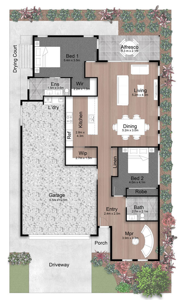 This home design blends contemporary style with practical and functional living, offering ample space and low-maintenance convenience without compromising on modern comfort.