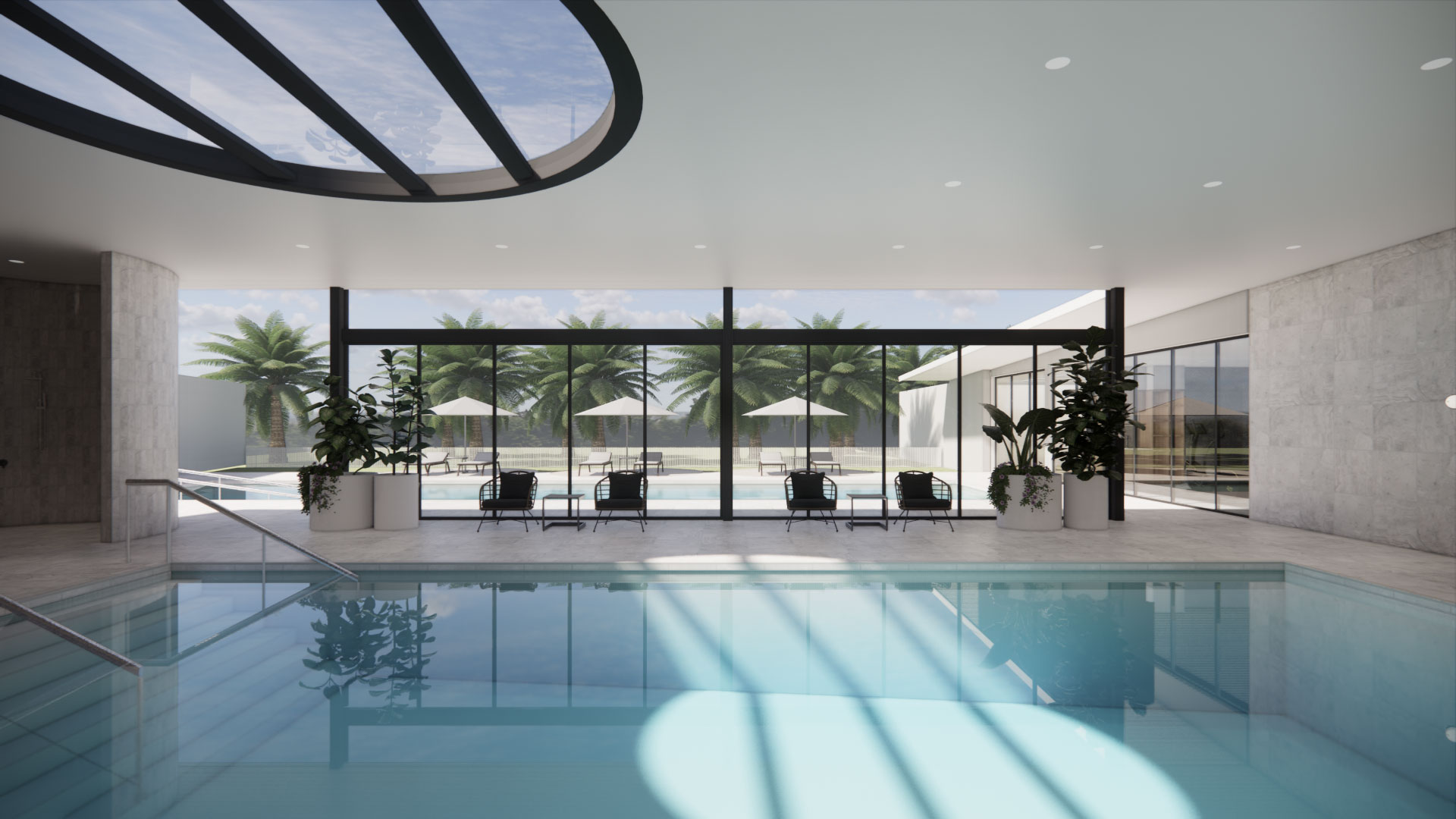 Heated indoor magnesium pool & heated outdoor lap pool